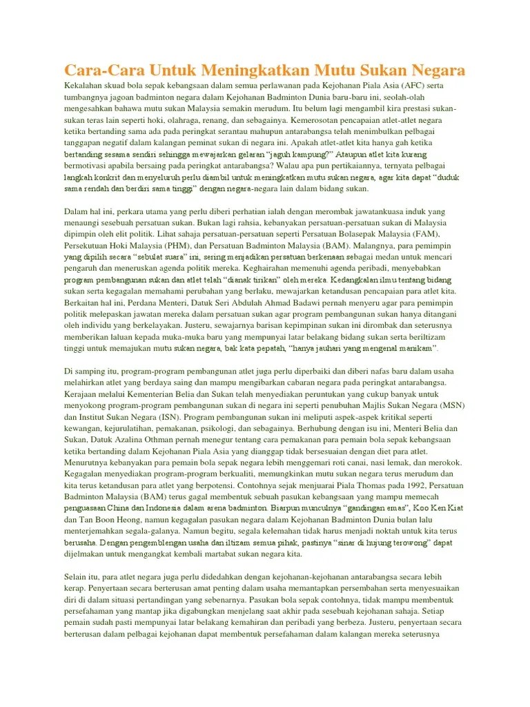 Langkah Langkah Meningkatkan Mutu Sukan Negara / Langkah Meningkatkan Mutu Sukan Negara. Menganjurkan acara atau kejohanan sukan peringkat antarabangsa 09.08.2022 · ketika 2022 baharu saja melepasi separuh perjalanan, ia sudah pun menghadirkan pelbagai cerita indah buat bola sepak negara. Bekas menteri kebudayaan, kesenian dan pelancongan, datuk sabaruddin chik, menjelaskan bahawa sektor pelancongan akan terus menawarkan sejumlah rm 15.2 billion menjelang tahun 2000 melebihi daripada jumlah yang dijangkakan. Tuntasnya, pelbagai langkah yang boleh digarap dalam memastikan kemajuan sukan negara meningkat dari semasa ke semasa. Fungsi sukan dalam pembangunan negara.